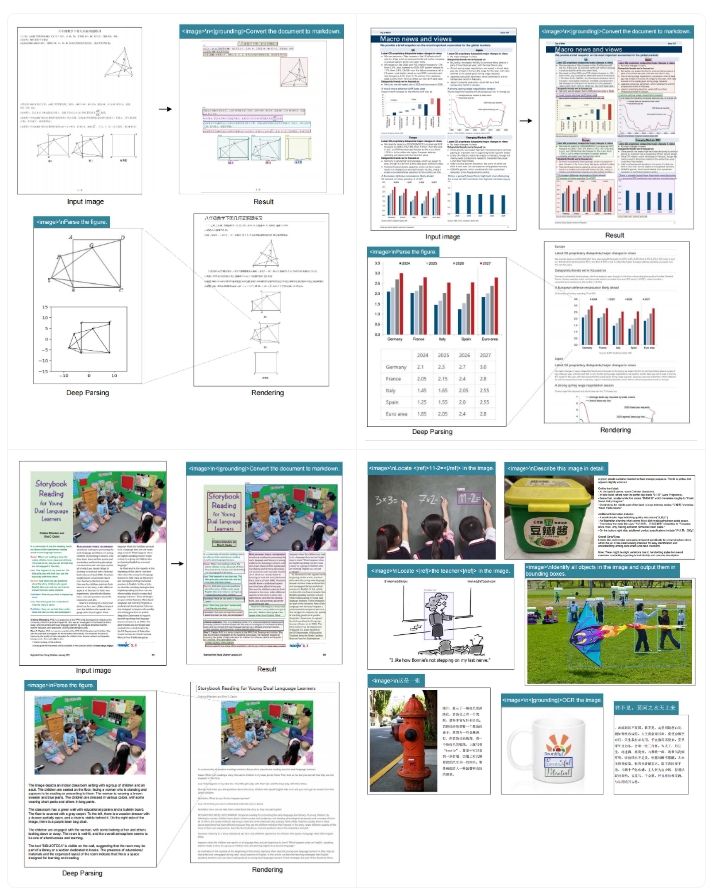 支持多种分辨率、支持动态分辨率输入、支持 Transformers 与 vLLM 推理框架。 最有意思的是它的 Prompt 设计,比如: