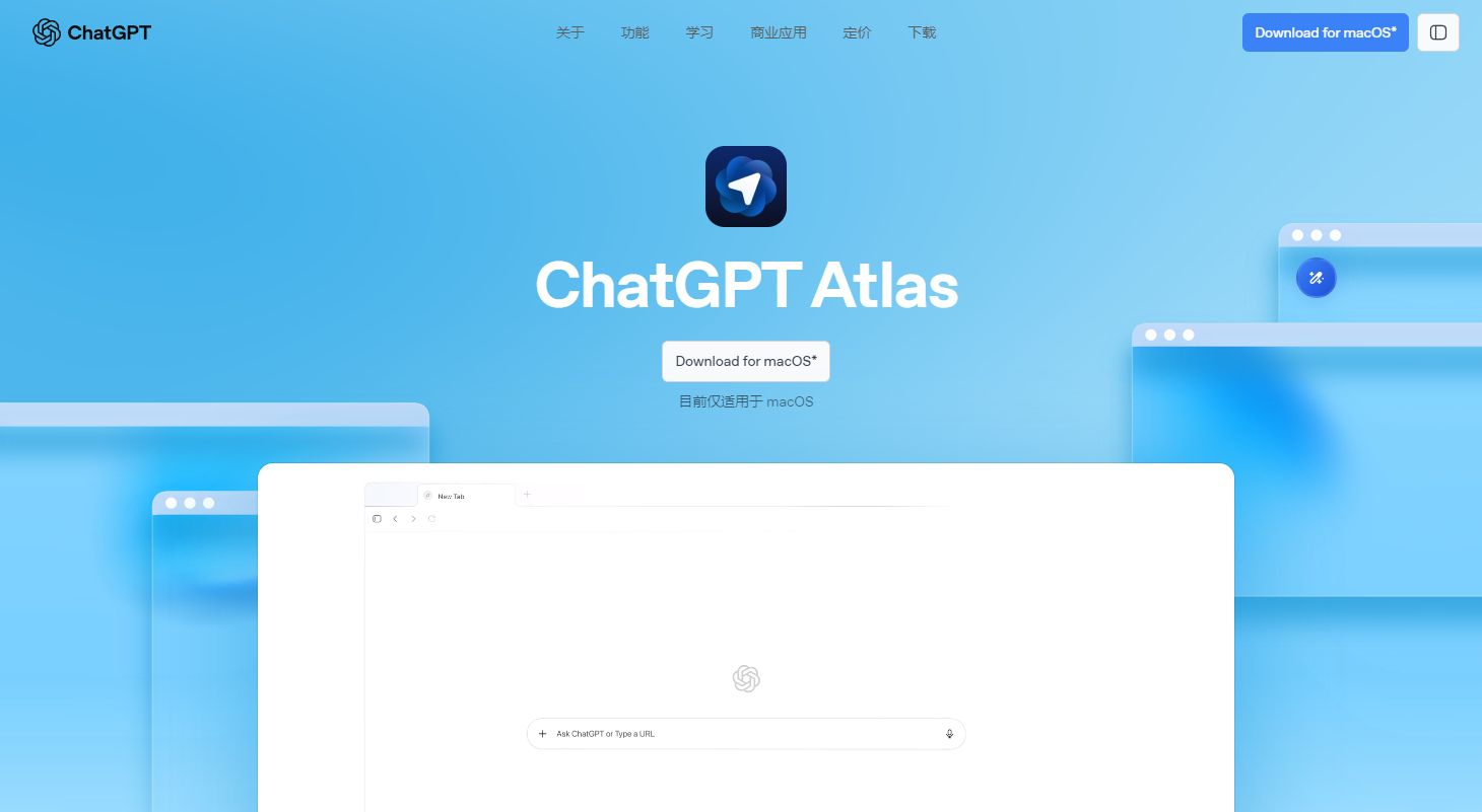 下载地址:https://chatgpt.com/zh-Hans-CN/atlas/