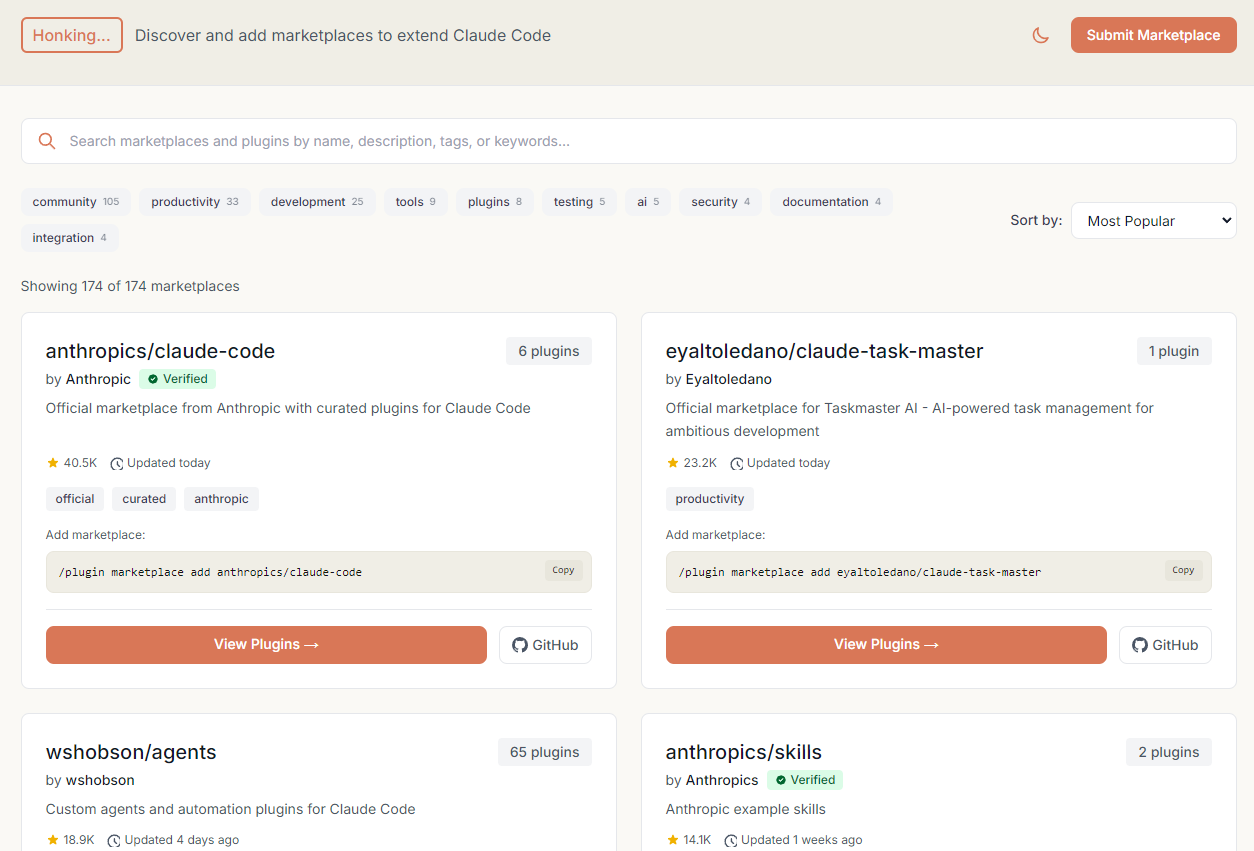 目前有多个活跃的社区插件市场,如 claude-code-plugins-plus,拥有超过 227 个生产就绪的插件,涵盖 15 个类别。你可以: