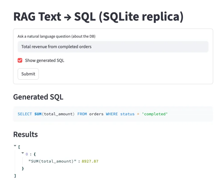 | 生成 Generation | 再基于这些上下文生成 SQL | “SELECT name FROM customers WHERE created_at > …” |
