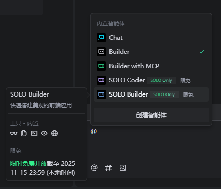 在活动期间,所有用户都可以免费体验 SOLO Coder、SOLO Builder。