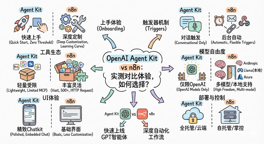Agent Kit 是“快速上手”,n8n 是“深度定制”。