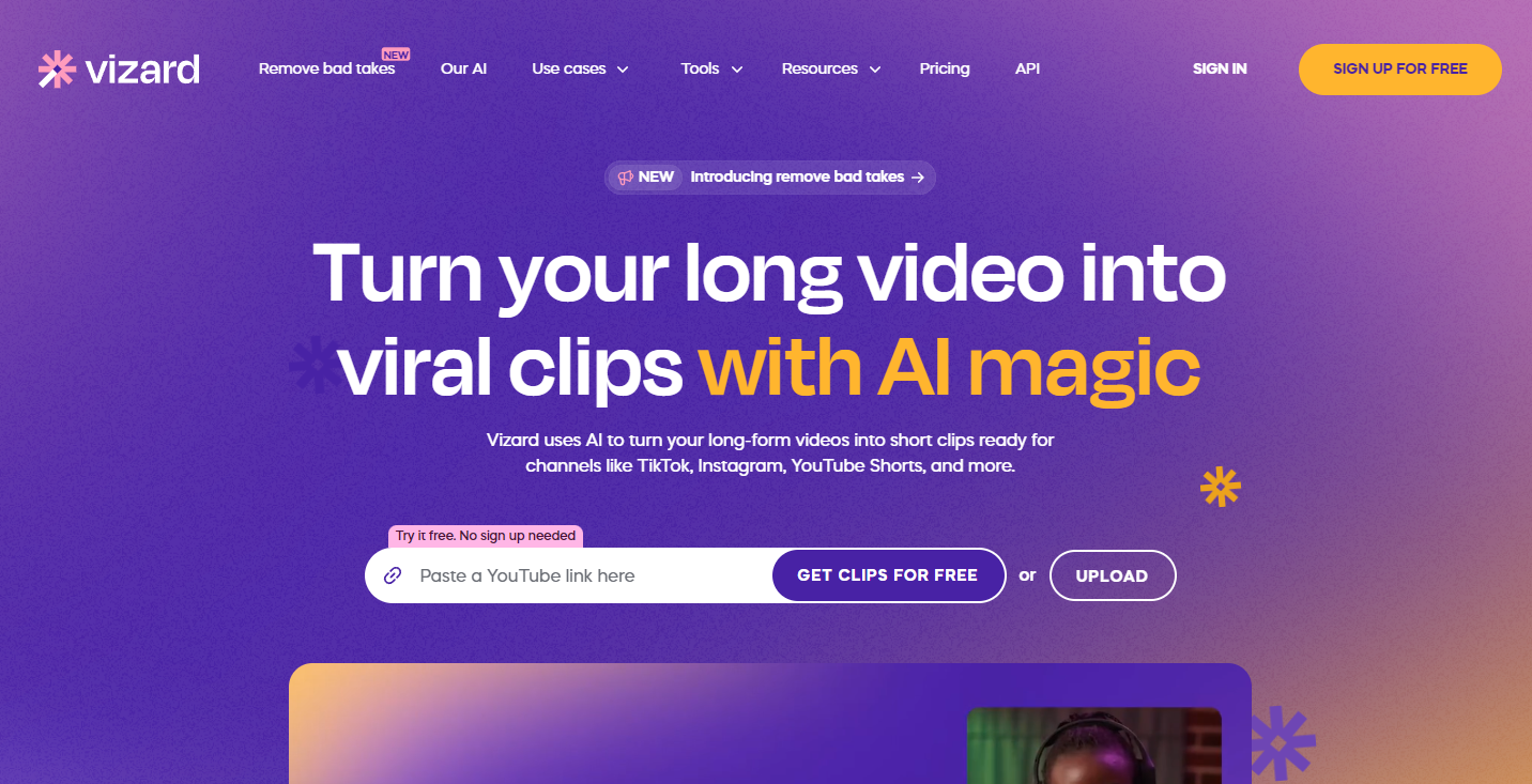 在这一定位上,Vizard(vizard.ai)是我近期稳定可用的一款,适合把直播、播客、访谈、课程等长内容快速切成可发布的短视频。