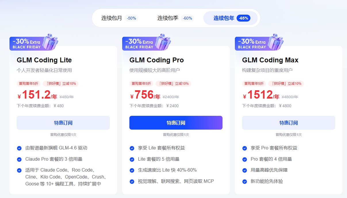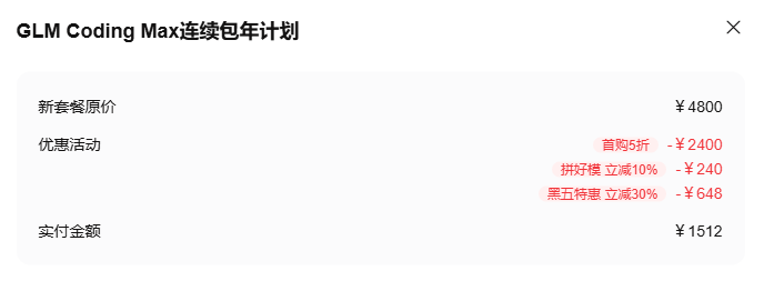 GLM Coding Plan的黑五已经入手了加大的GLM Coding Max版