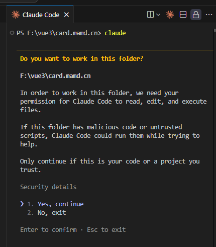 说实话,claude的命令行对新手着实不太友好,特别是全英文的操作提示,没一点功底,开发过程肯定经常卡壳,虽然有很多技巧和教程,但新手用起来还是很费劲,所以我比较推荐使用Vscode的Claude Code插件使用,不过使用插件之前,上面的安装步骤也是不能少的;