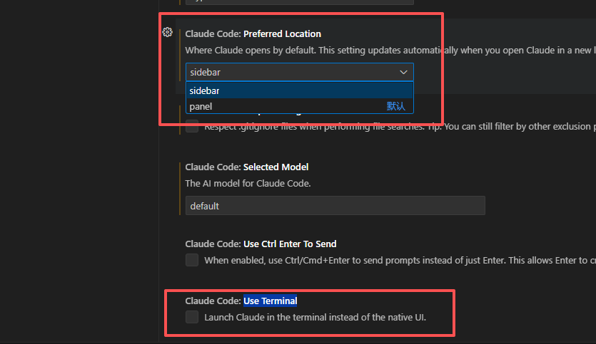 新版本的Claude Code插件默认是终端,如果习惯边栏的方式,这里教大家如何修改配置