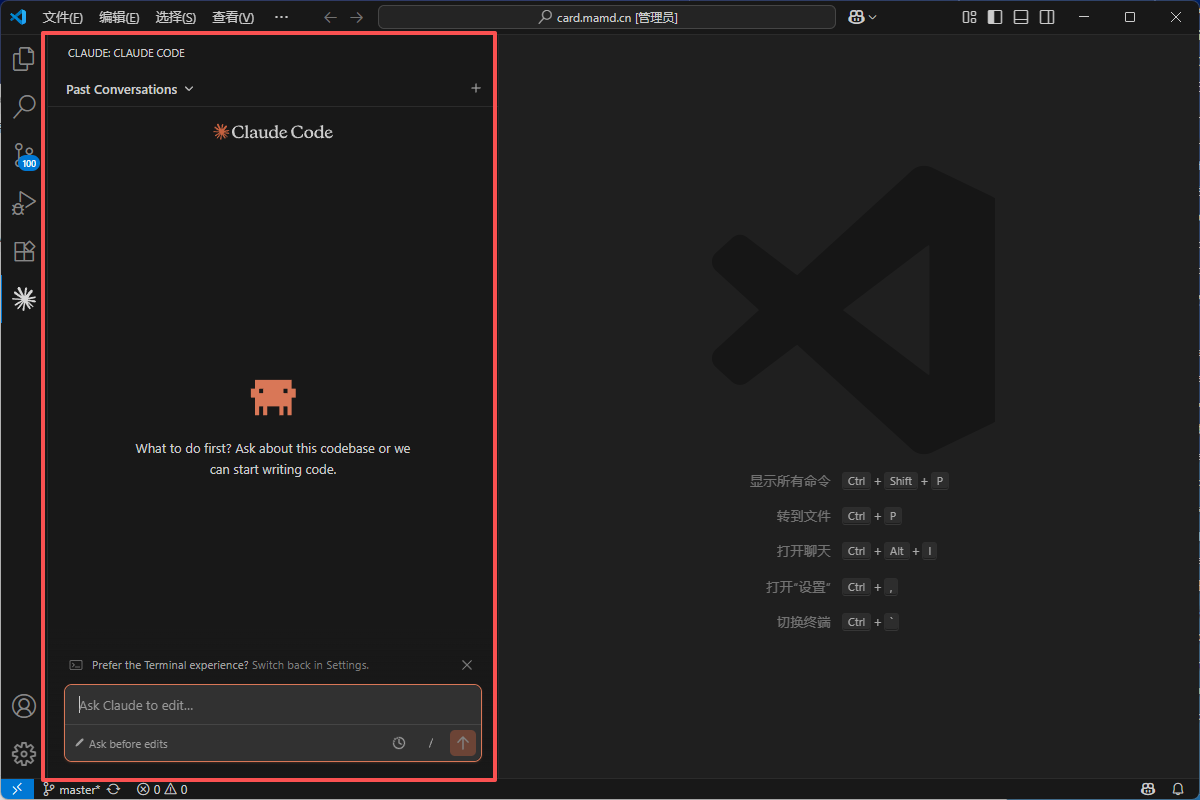 现在就可以在Vscode的侧边栏直接看到Claude Code图标了,这个开发习惯是不是好很多了。