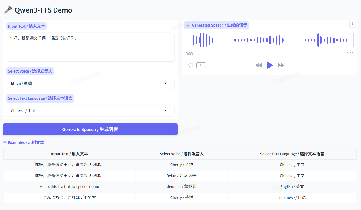 - ModelScope Demo:http://modelscope.cn/studios/Qwen/Qwen3-TTS-Demo