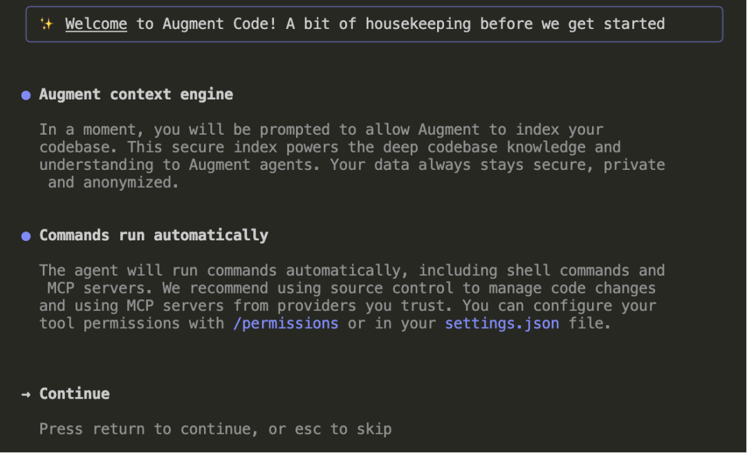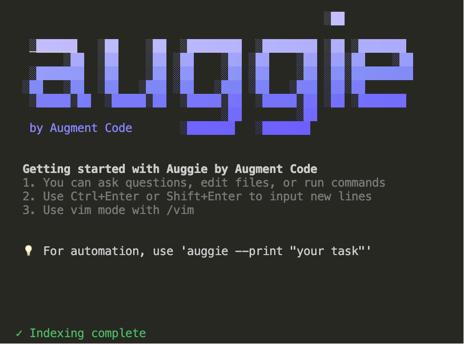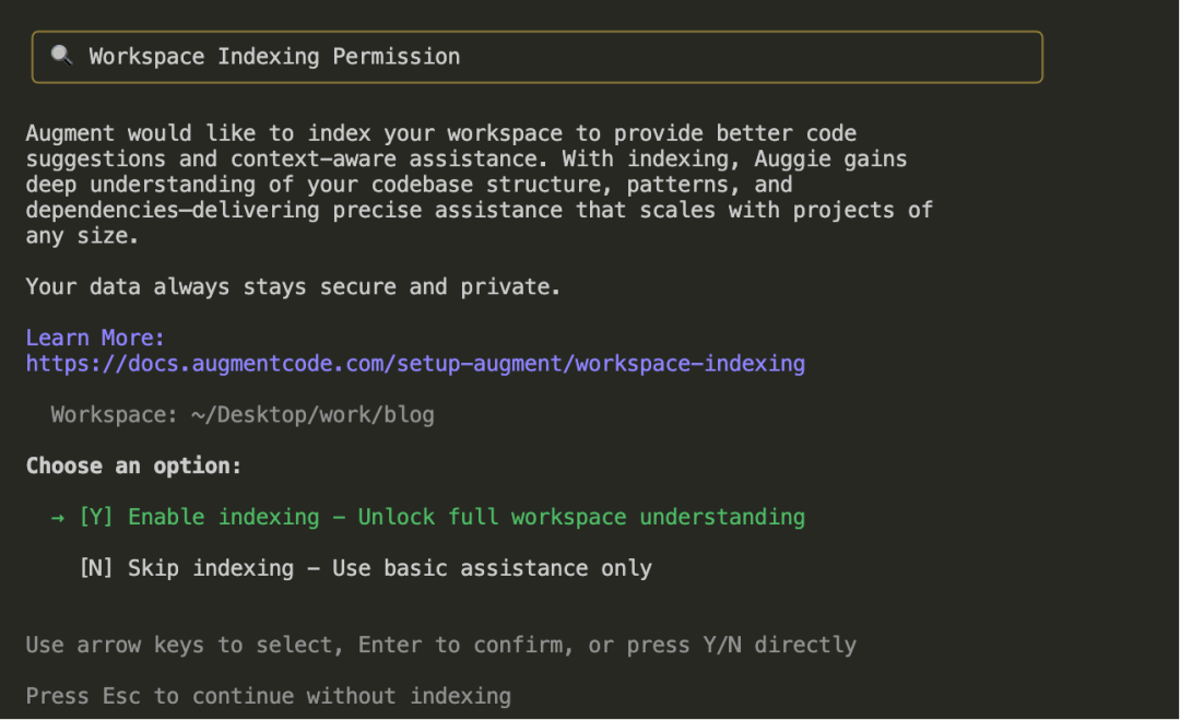 选择确认(Y)并回车,Auggie会启动索引流程。