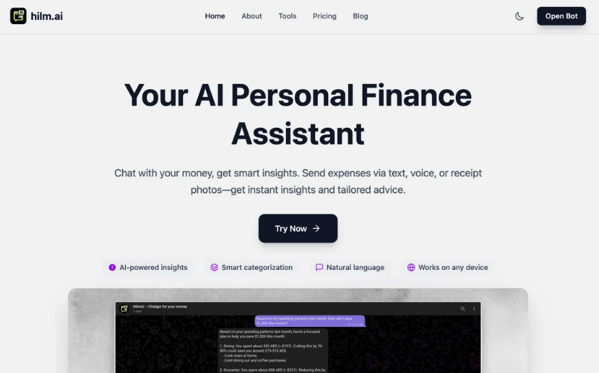 Hilm AI是一款 AI 个人财务助手,帮助用户追踪和管理资金。 通过自然语言对话,用户可以轻松记录支出、获取智能分析和个性化建议。 它可以帮助你更好地掌握财务状况。