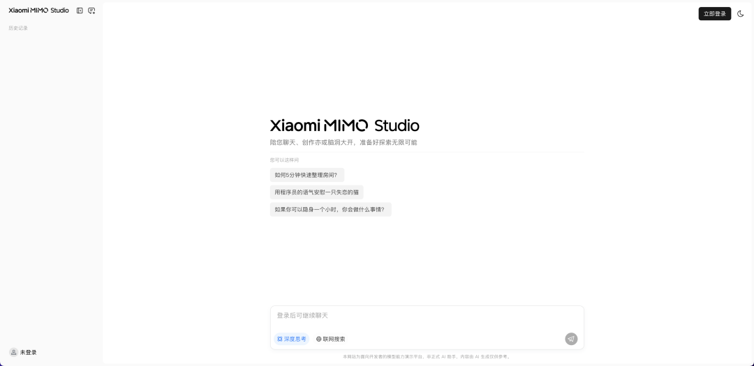 Xiaomi MiMo Studio 是小米推出的在线 AI 聊天与模型体验平台,主打让用户第一时间体验其最新发布的大模型能力。