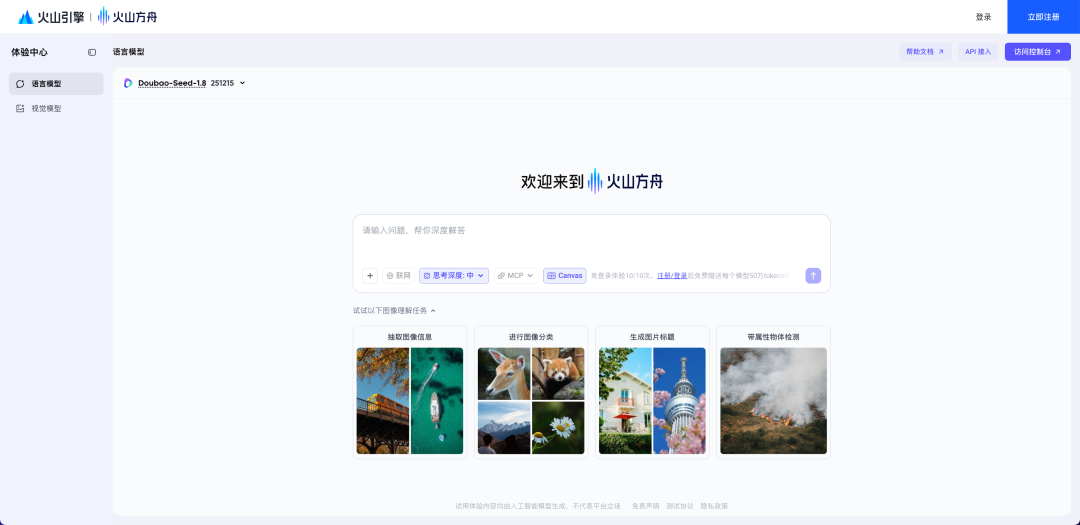 https://www.volcengine.com/experience/ark?mode=chat&modelId=doubao-seed-1-8-251215