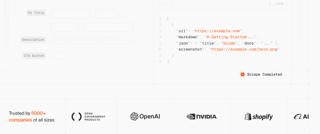 - LLM友好的输出格式:直接生成干净的Markdown、结构化JSON、截图等,无需额外的数据清洗和解析代码