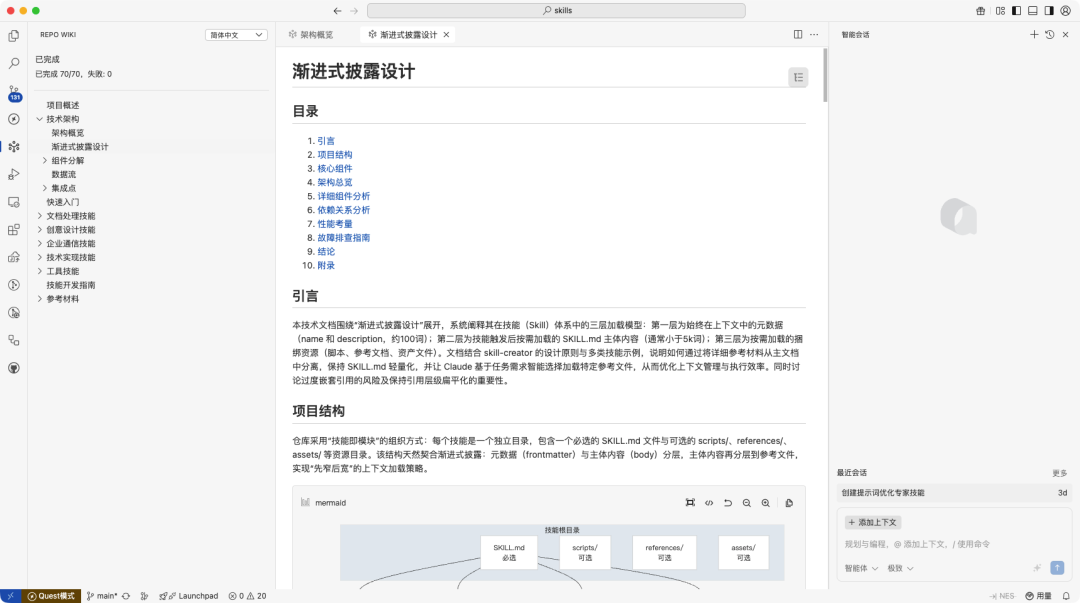 Qoder会按照Skill规范自动生成完整的文件结构,包括: