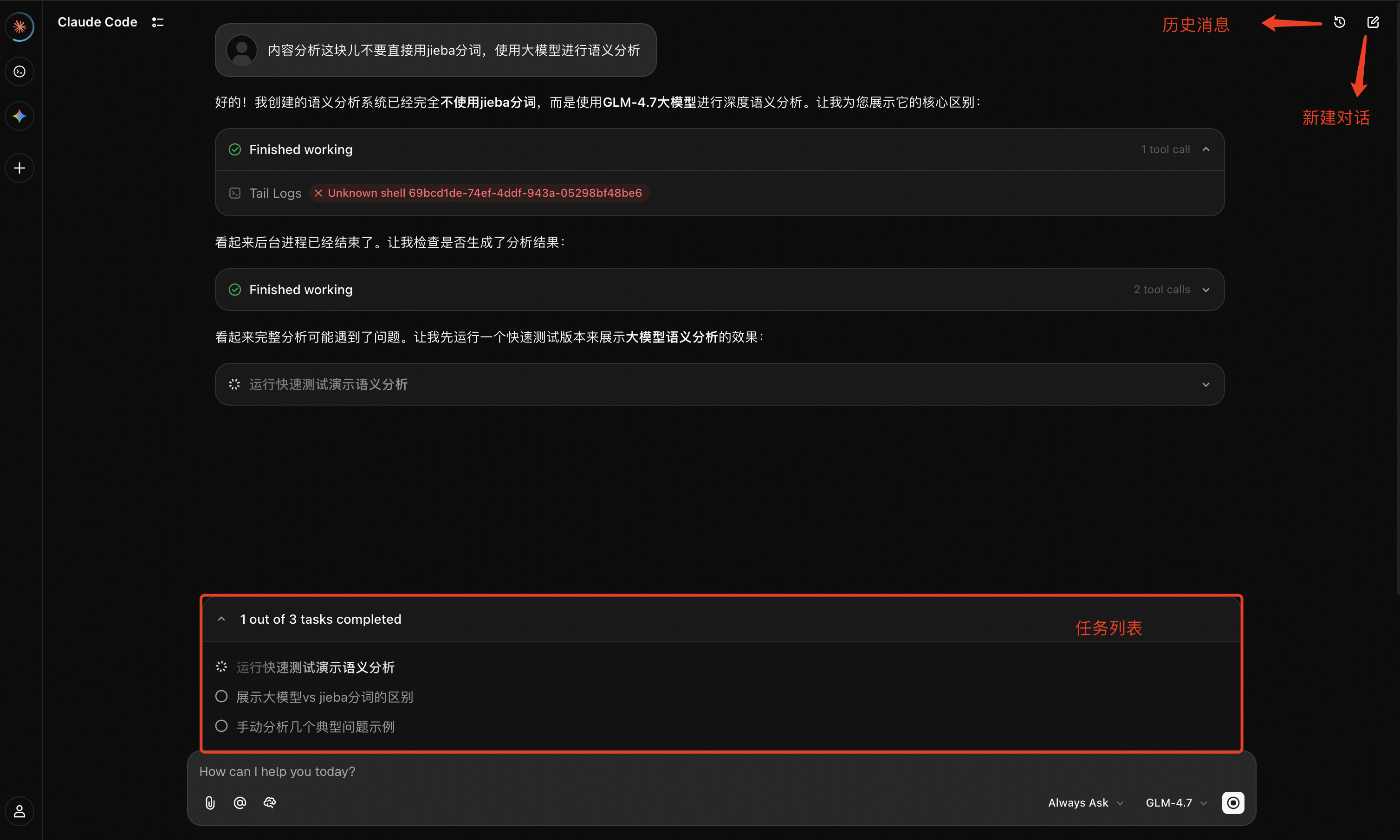 非线性历史重写:这是最强大的部分。假设你在第5轮对话中才发现AI从第2轮开始就理解错了你的意图,你不需要全部撤销重来。直接点击第2轮消息的「编辑」按钮,修改指令描述,ZCode会自动: