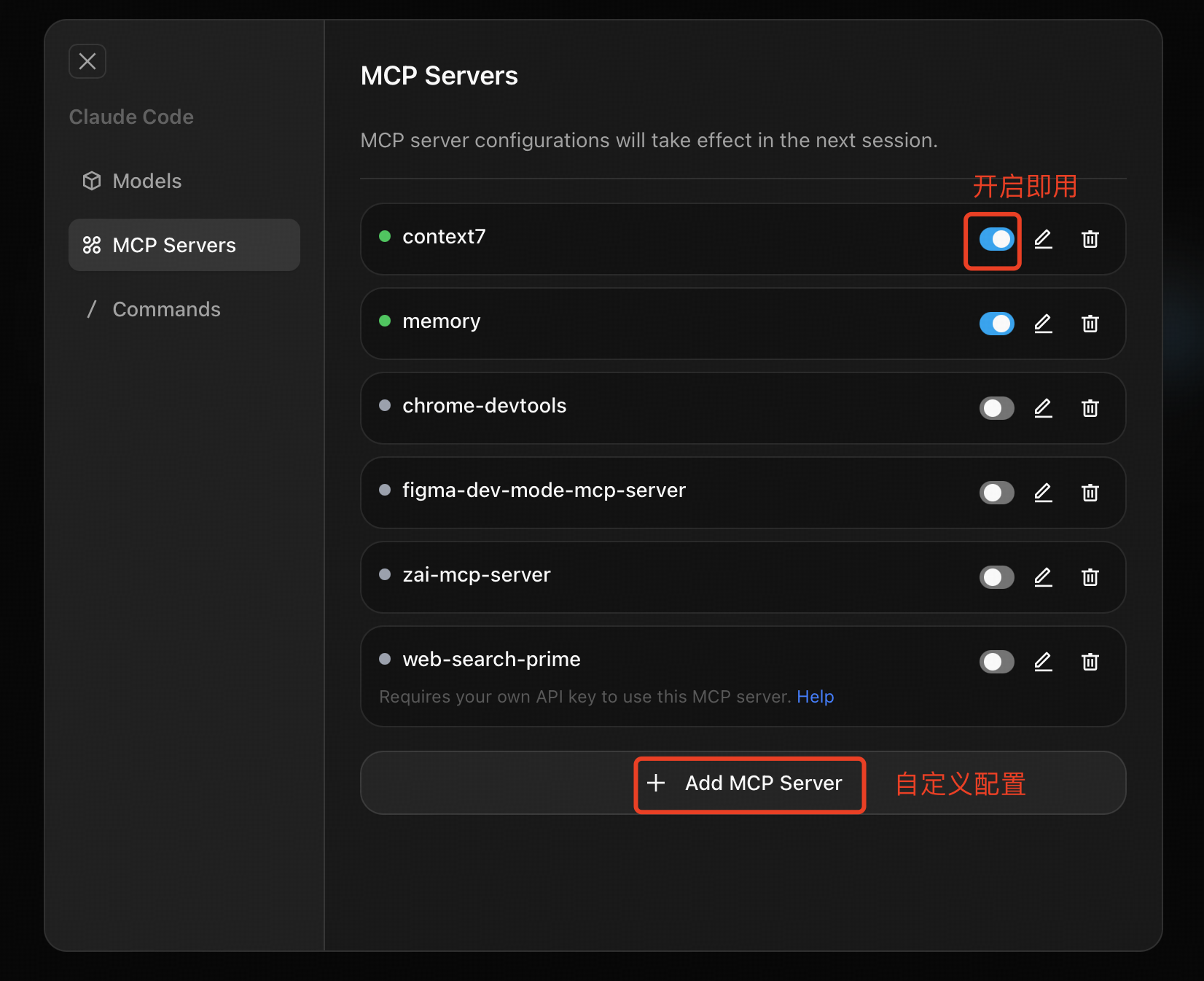 自定义配置:您也可以创建和配置自己的 MCP 服务,以满足独特的项目需求,实现最大程度的控制力与灵活性。
