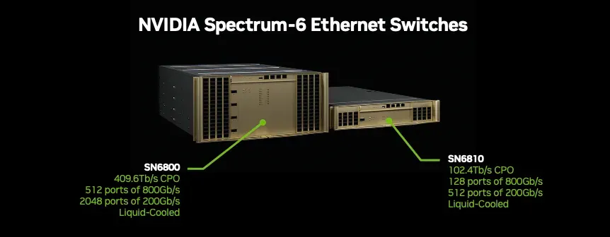 - Spectrum-6 Ethernet Switch:机架间互联,单芯片带宽 102.4Tb/s