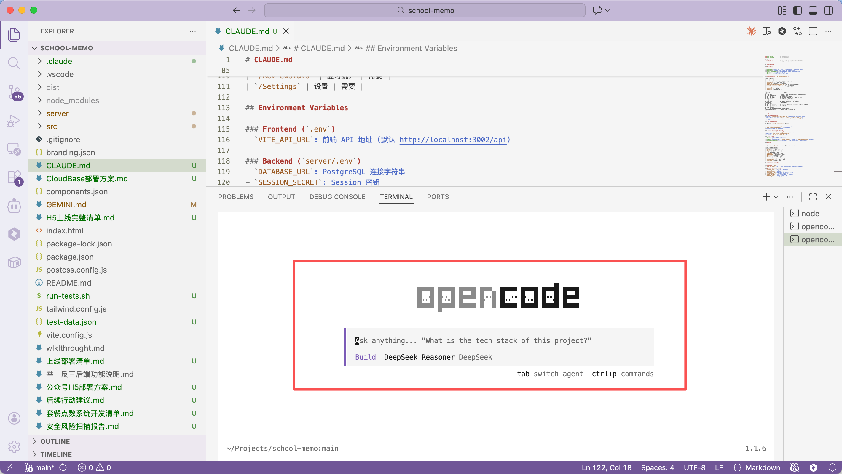 如果你习惯在 VSCode 中工作,可以直接在 VSCode 的集成终端中启动 OpenCode: