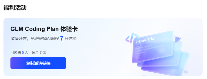 如果你想先试试,现在智谱开放了GLM Coding Plan 7天体验卡