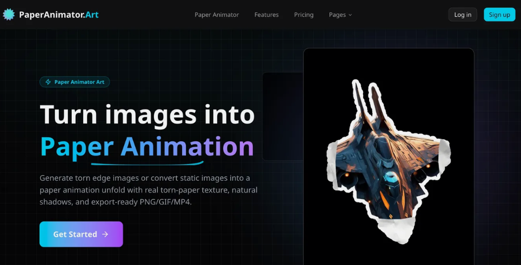 Paper Animator Art 是一款将图像转化为纸张动画的AI工作室。它通过逼真的撕纸效果、自然的阴影和流畅的展开,让你的图片变成引人入胜的视觉故事。 无论您是发布产品、更新品牌故事,还是投放需要脱颖而出的社交广告,它都能帮助您快速制作纸张动画。