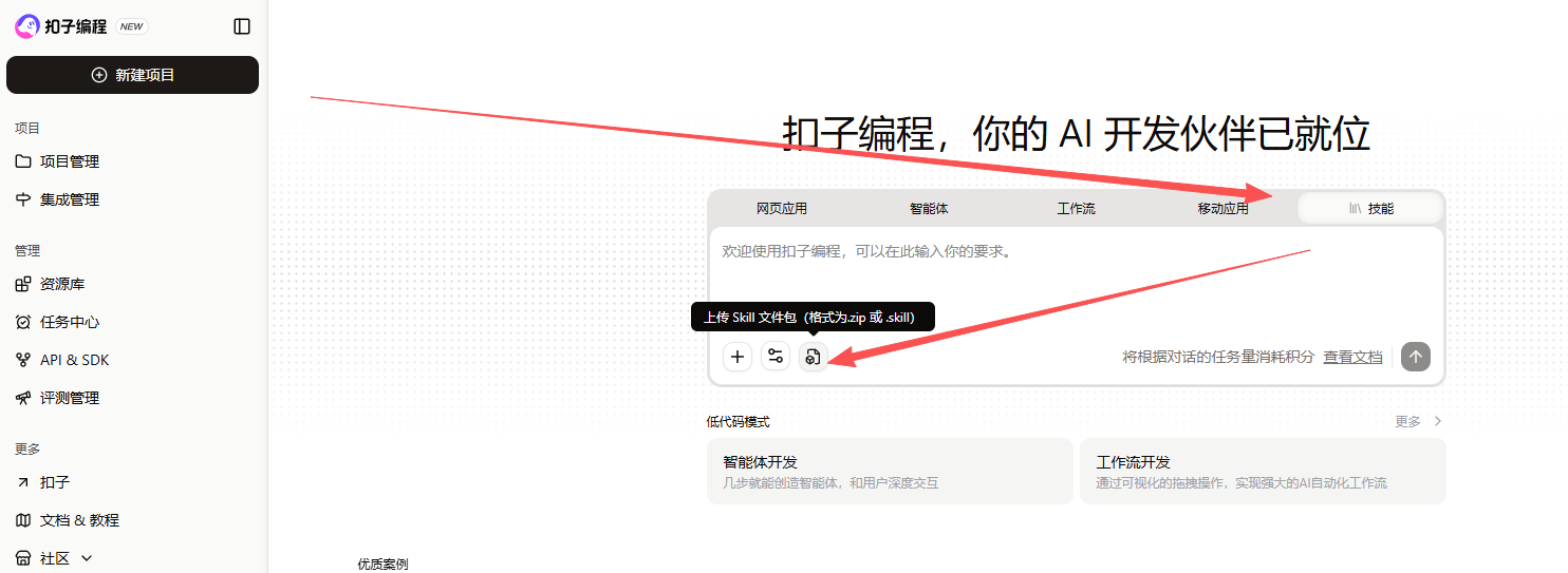 2)现有Skills不能满足需求,上传到扣子,让它帮你改