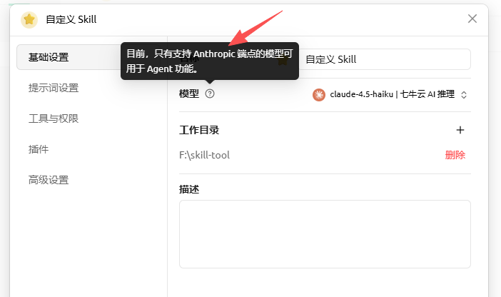 这个是近期在看过我教程之后问的最多的一个问题,因为在Cherry Studio里提示了目前,只有支持 Anthropic端点的模型可用于Agent功能。