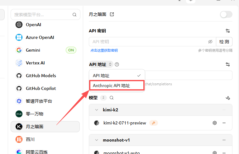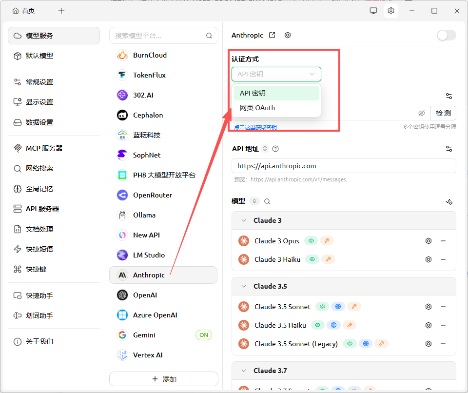 这个也是我最近研究发现的,Cherry Studio针对有些支持Anthropic接口有一个切换API的功能,在这里: