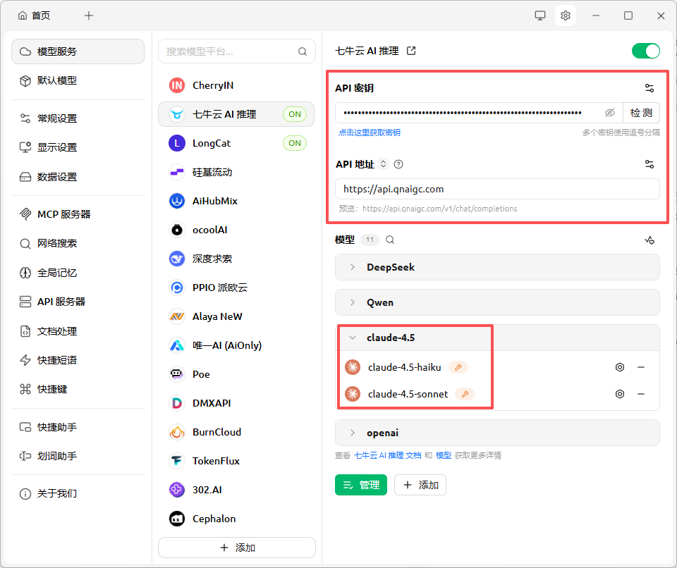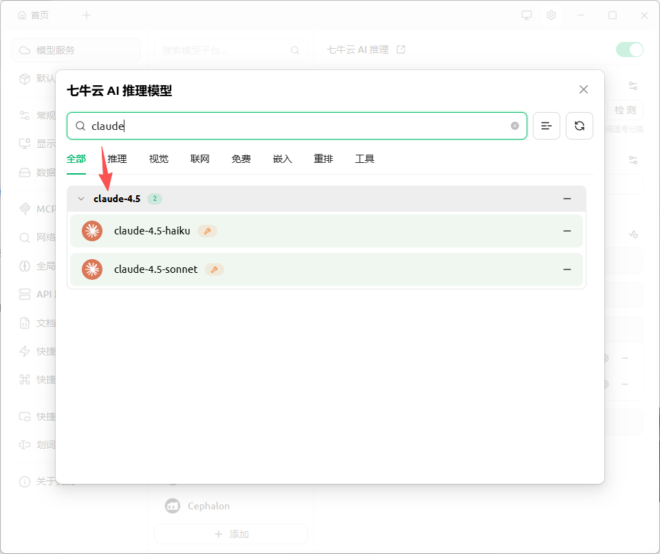 七牛云添加这里很多人说找不到claude模型,在管理 - 搜索模型就可以找到了!