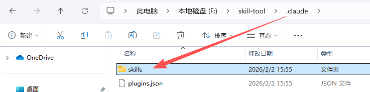 进去后就能看到有一个skills文件夹,所有skill包就都在里面了