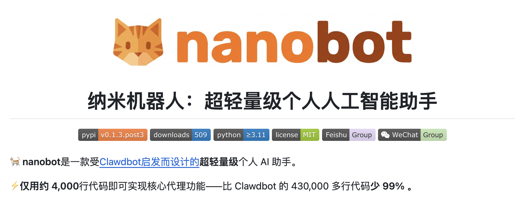 近期浏览开源社区时,我注意到一个有趣的现象:当大型AI智能体项目动辄几十万行代码时,总有团队在思考——这些复杂度真的必要吗?香港大学数据智能实验室(HKUDS)的新开源项目Nanobot给了一个有说服力的答案。