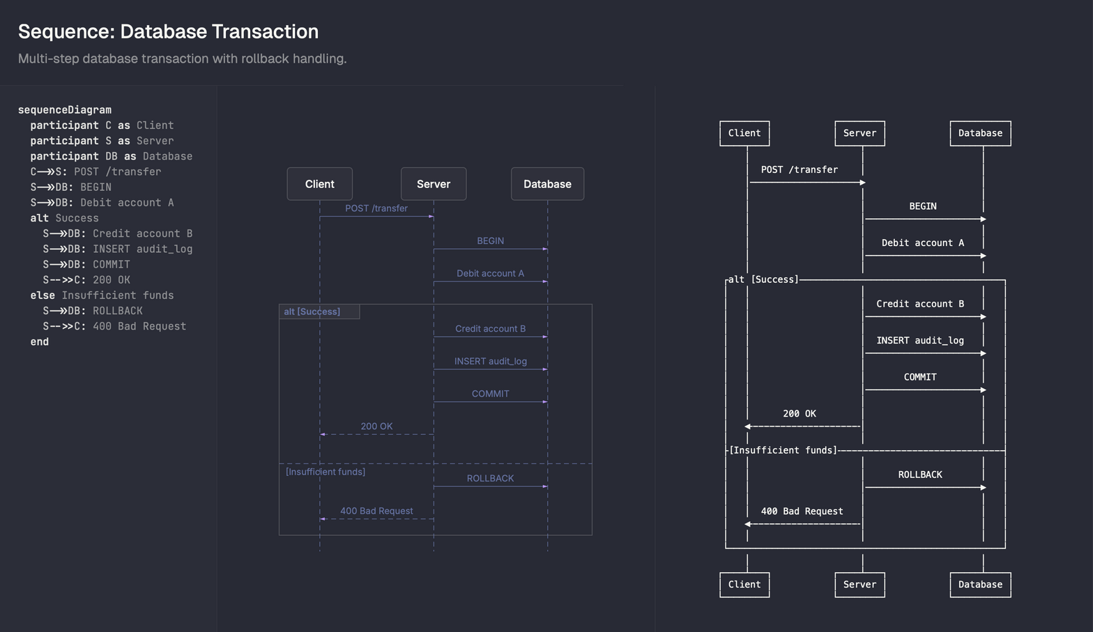 • 与 Mermaid 兼容:基于现有 Mermaid 语法,无需重新学习