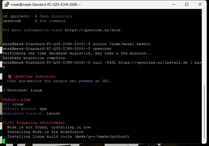 curl -fsSL https://openclaw.ai/install.sh | bash
