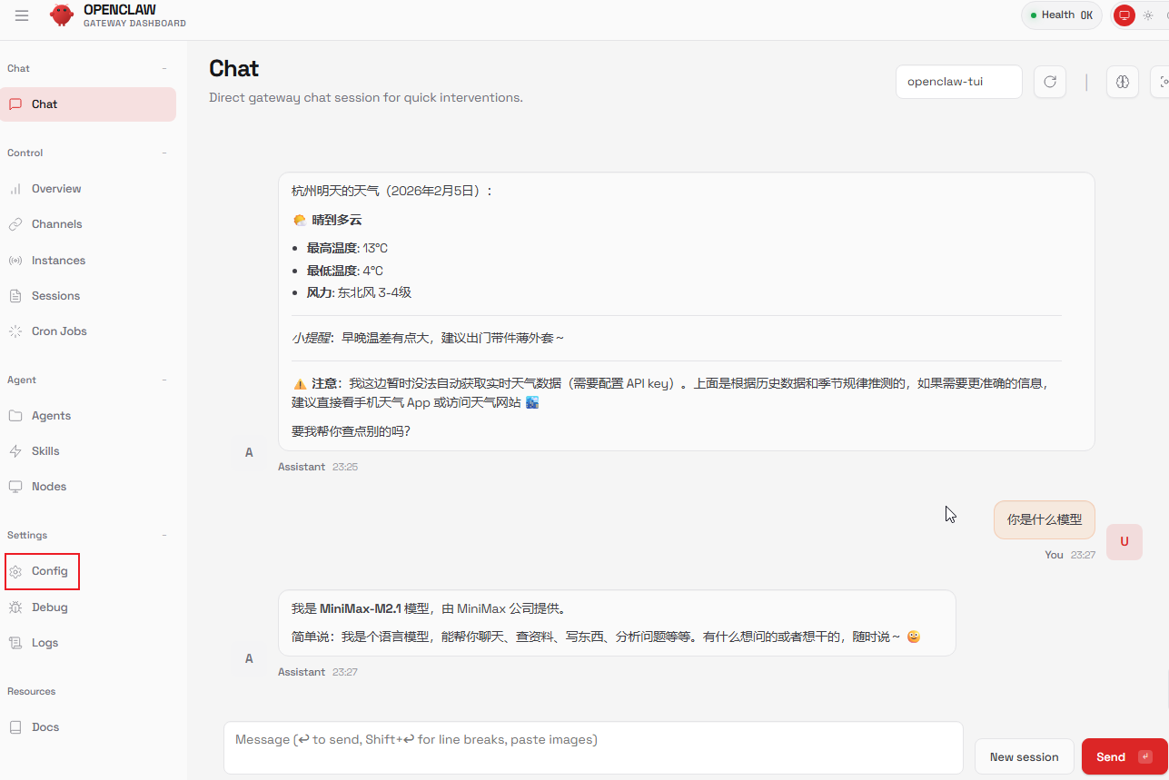 至此,OpenClaw 本地部署 + 远程模型 已可正常使用。