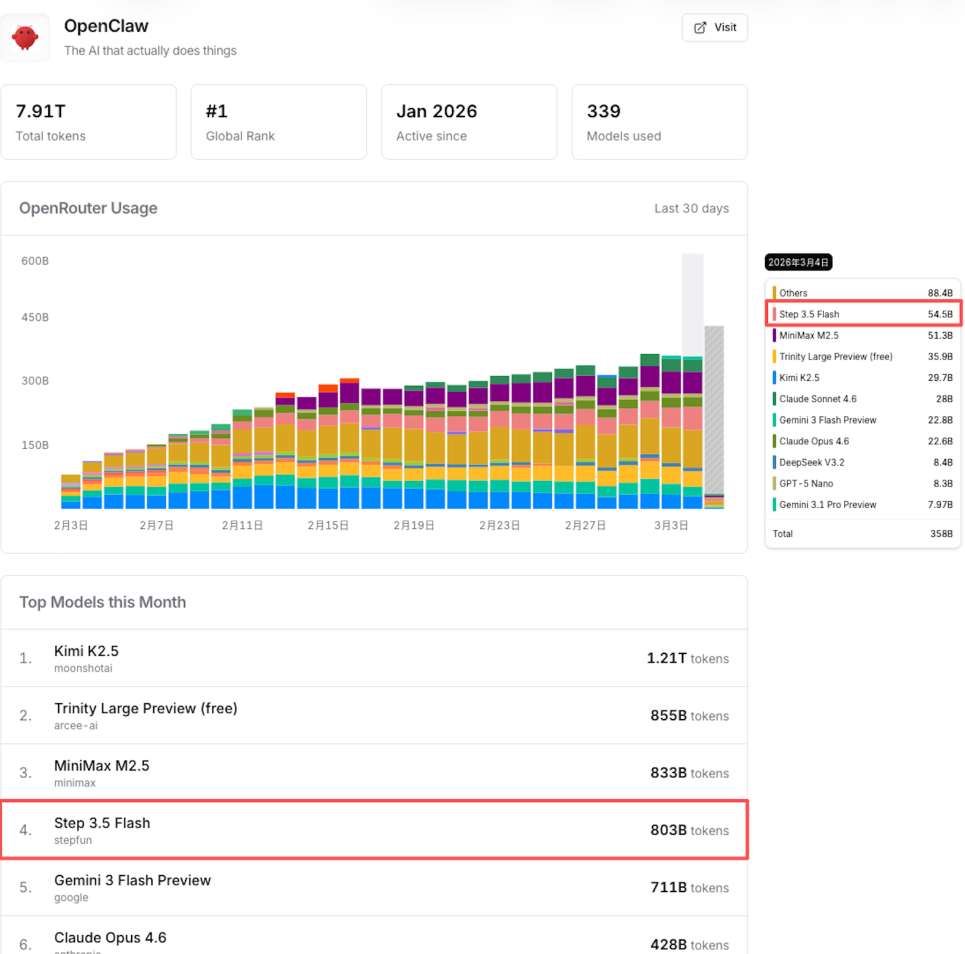 1 Step 3.5 Flash 全链路开源,冲上 OpenClaw 调用榜