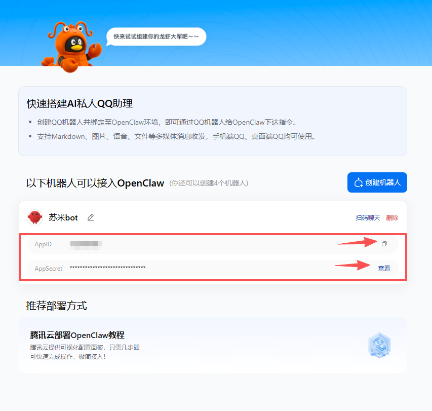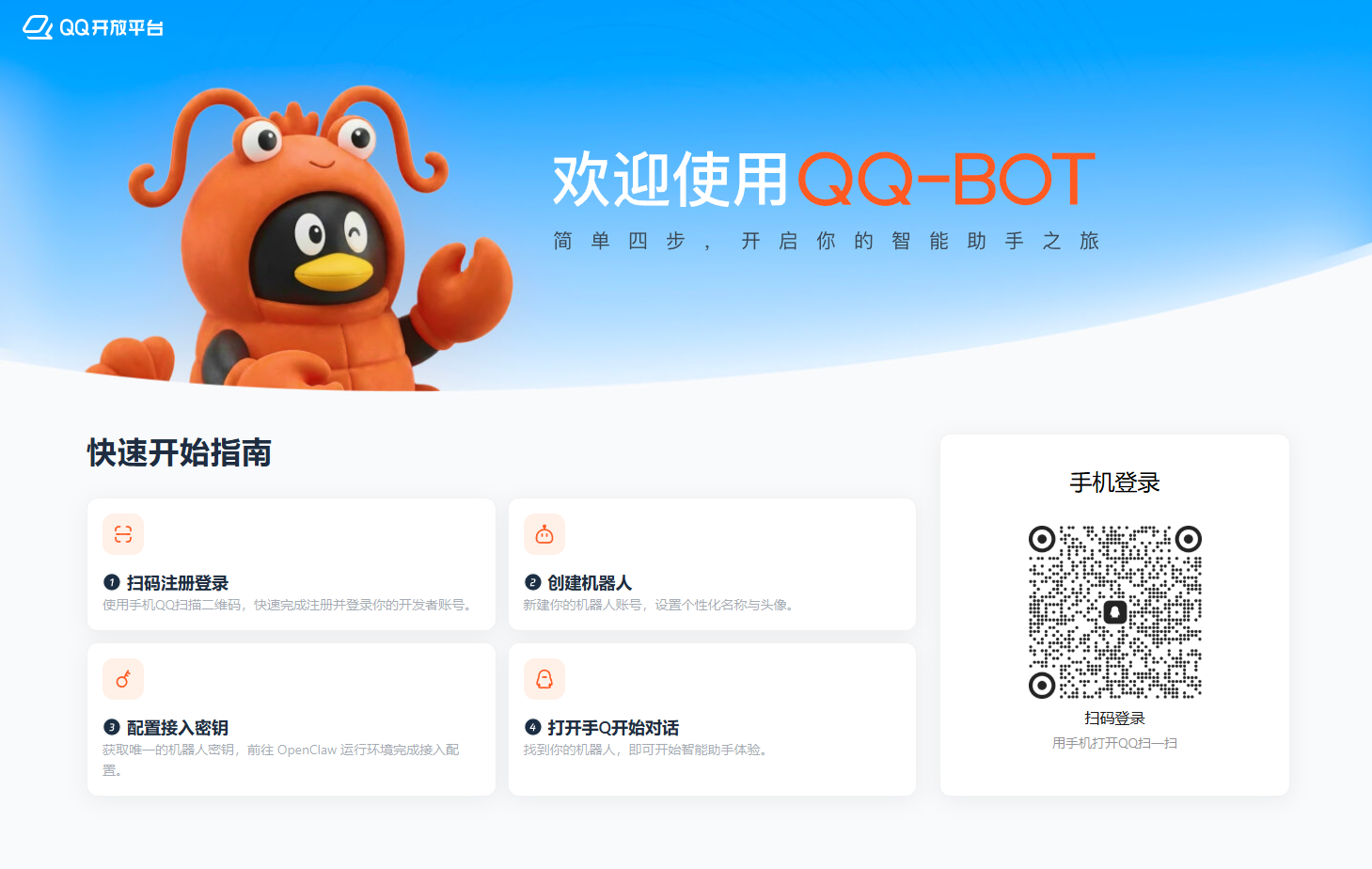 访问 QQ 机器人平台:https://q.qq.com/qqbot/openclaw/login.html