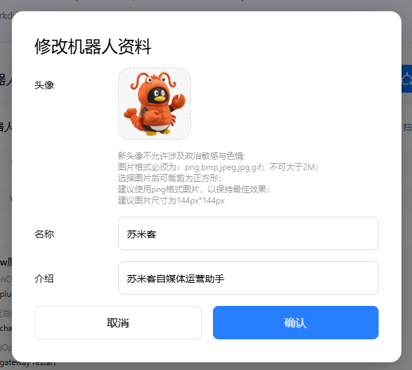 可选:在机器人图标右侧点击"修改",自定义名称和头像