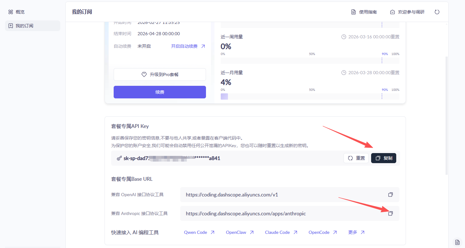 API Key:从 Coding Plan 控制台复制