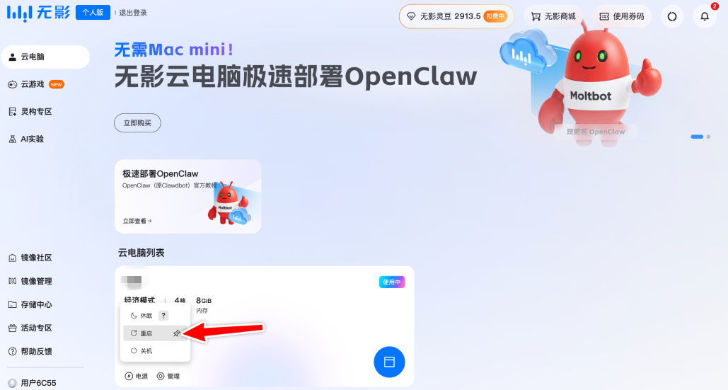 云电脑提供了开箱即用的 OpenClaw 预装环境,省去本地配置的复杂性。
