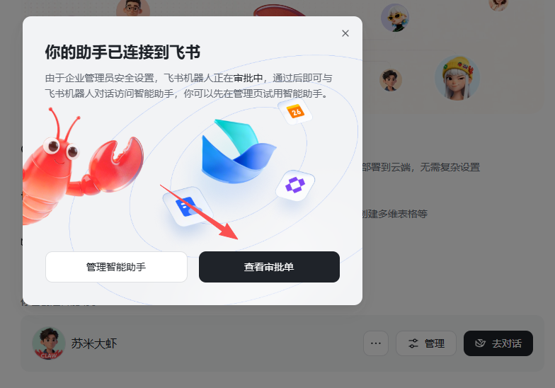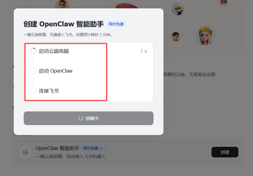 自动配置:后台自动完成启动云端电脑、环境初始化及连接飞书机器人注册。