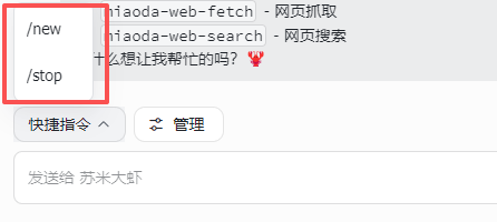/new:强制开启新会话,清除上下文记忆。适用于切换完全不同主题的任务,避免“上下文污染”。/stop:立即终止当前生成。当模型产生幻觉或偏离预期时,可快速打断,节省 Token 消耗。