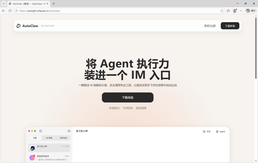 访问官方地址:https://autoglm.zhipuai.cn/autoclaw/