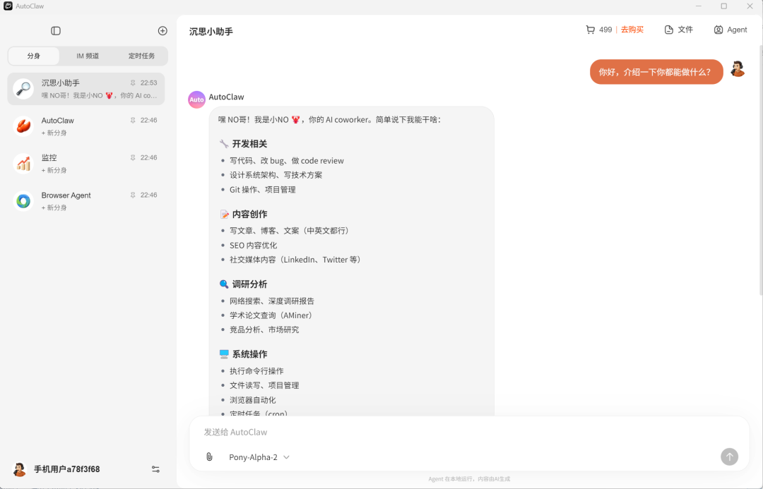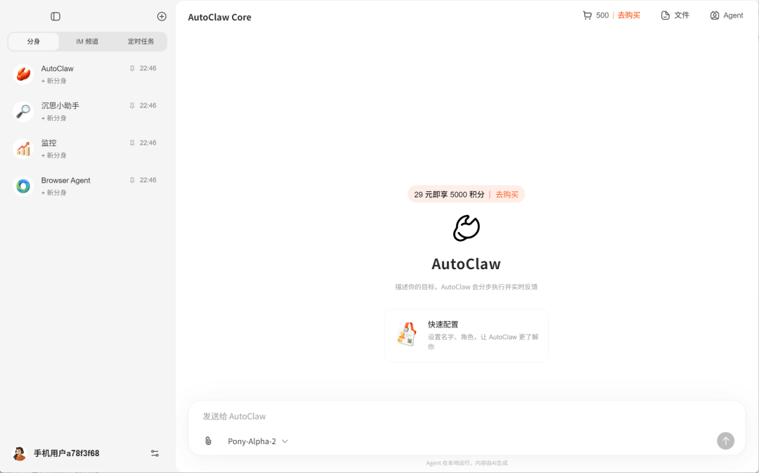 系统自动加载Pony-Alpha-2模型(智谱针对OpenClaw场景优化的版本)