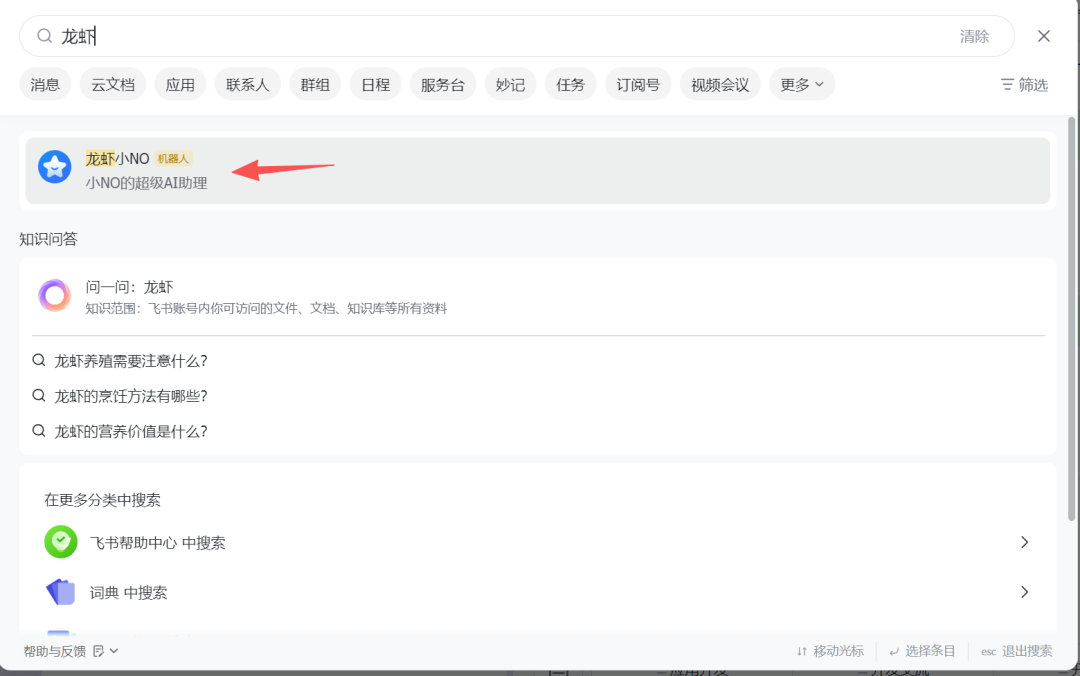 此时飞书用户可搜索到该机器人