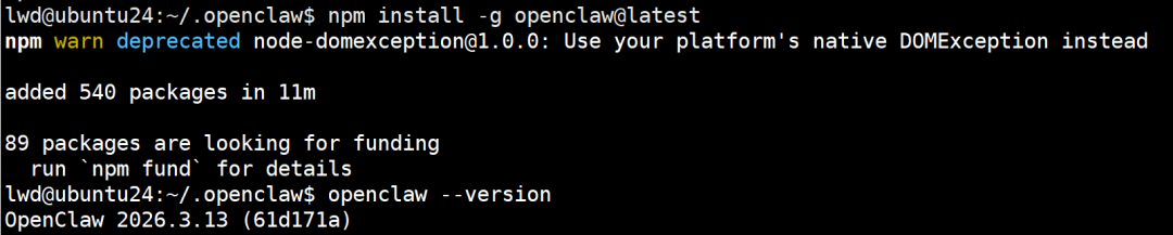 因此OpenClaw命令在新的Node环境下不可用,需要重新安装。