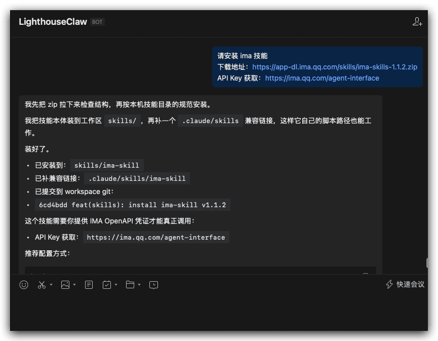 请安装 ima 技能 下载地址:https://app-dl.ima.qq.com/skills/ima-skills-1.1.2.zip API Key 获取:https://ima.qq.com/agent-interface