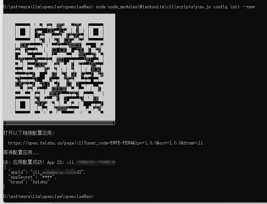 系统会生成一个飞书应用创建链接。