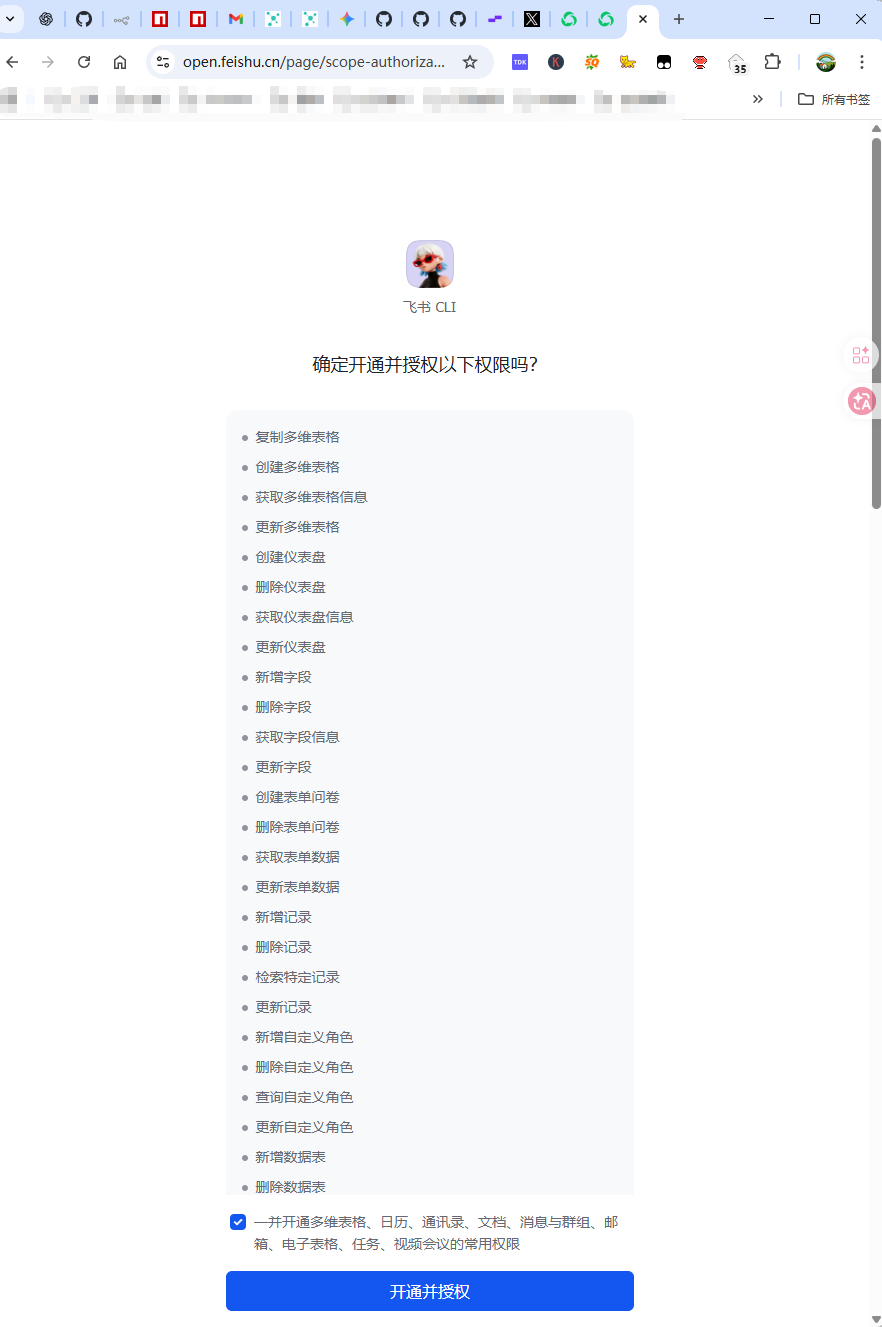 系统会生成一个飞书授权链接,按以下步骤操作: