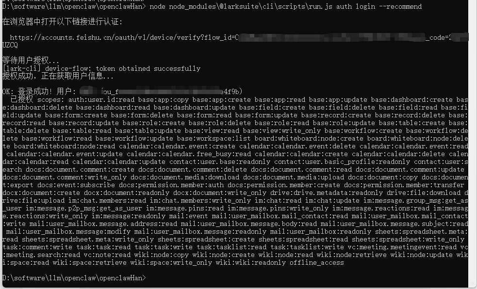 lark auth login --recommend