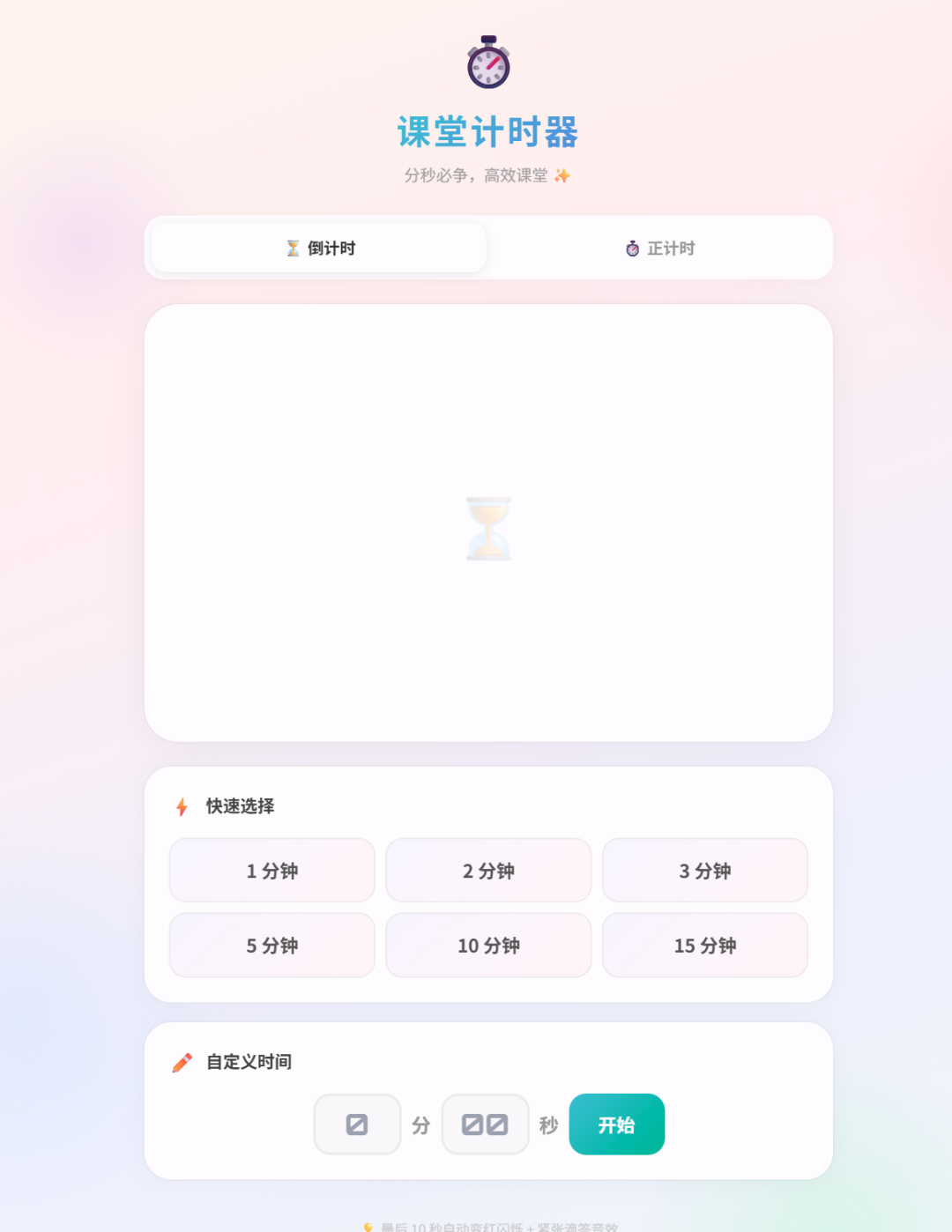5. 倒计时结束:响亮的铃声 + 全屏闪烁提示"时间到!"