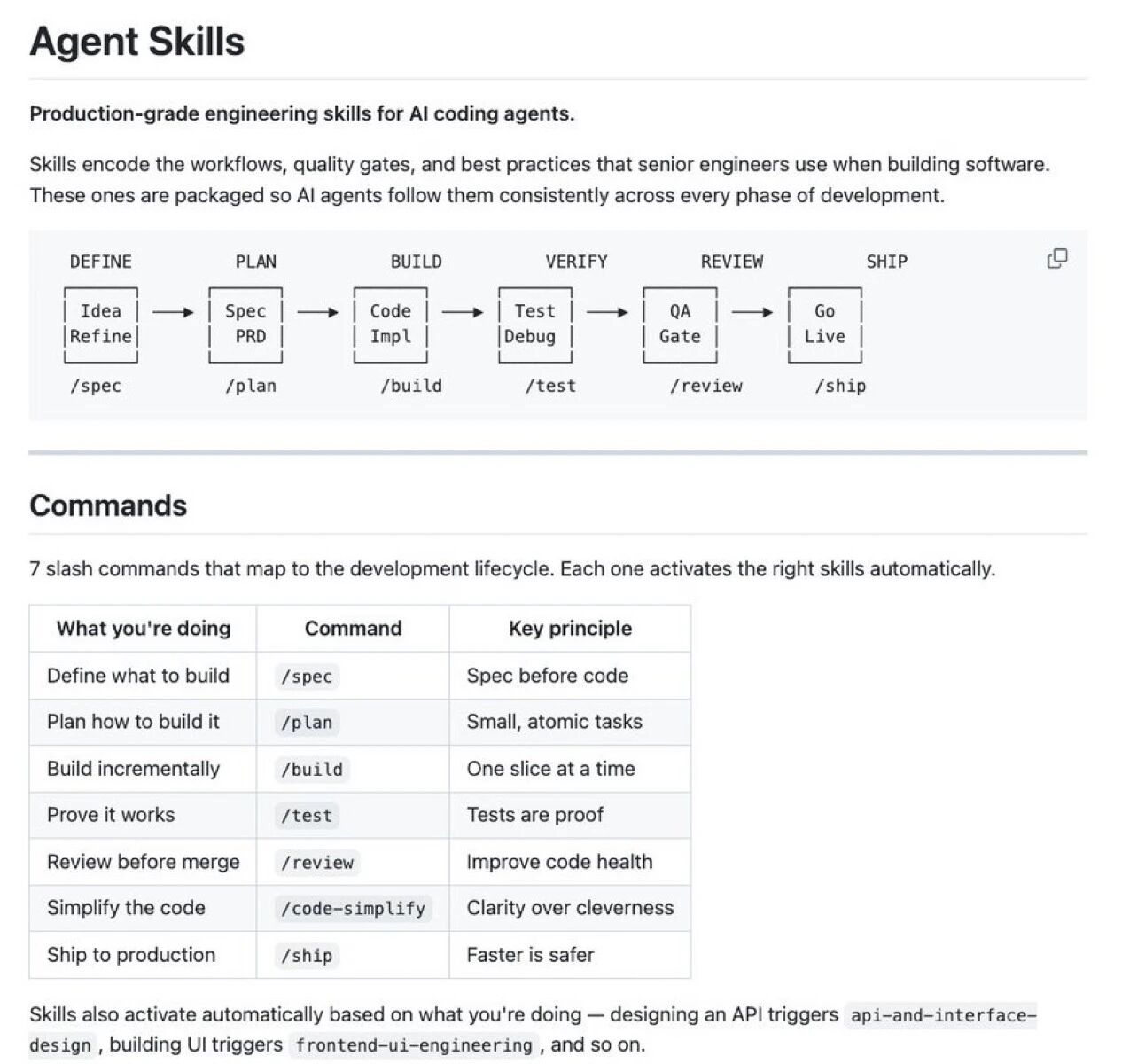 Agent Skills是Google资深工程师Addy Osmani基于团队实践总结的开源项目。